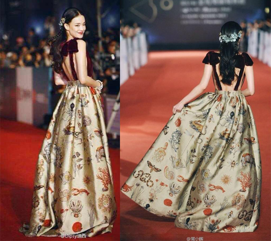 2013年號稱出席陣容最豪華的金馬50,舒淇穿了一身VALENTINO帶點復古味道的絲絨印花深V禮服,加上華麗的髮飾,盡顯高貴氣質,一出場就讓人眼睛一亮,被封為紅毯第一美。