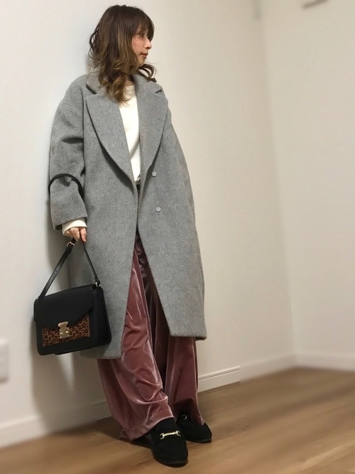 一般想到粉色通常會比較偏向甜美、少女的穿搭風格,不過光澤感絨布的寬褲其實跟oversize的長大衣也可以混搭出成熟又帥氣的Look呢!