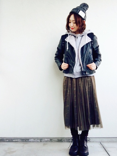 帥氣的軍綠色與翻領外套混搭入紗裙的甜美,讓整體造型增添了幾許女孩感~
