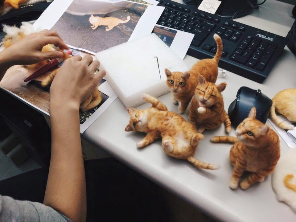 聊到教學的過程,Feya特別推薦初學者們從2D布面創作開始,因為調整毛色及位置的過程都像畫畫一樣簡單,在創作時也可以訓練自己觀察顏色、細節和比例的功夫。往後製作立體的作品時才有一定的基礎,比較不容易因為初入門就挑戰太困難的技法而容易感到灰心喔!