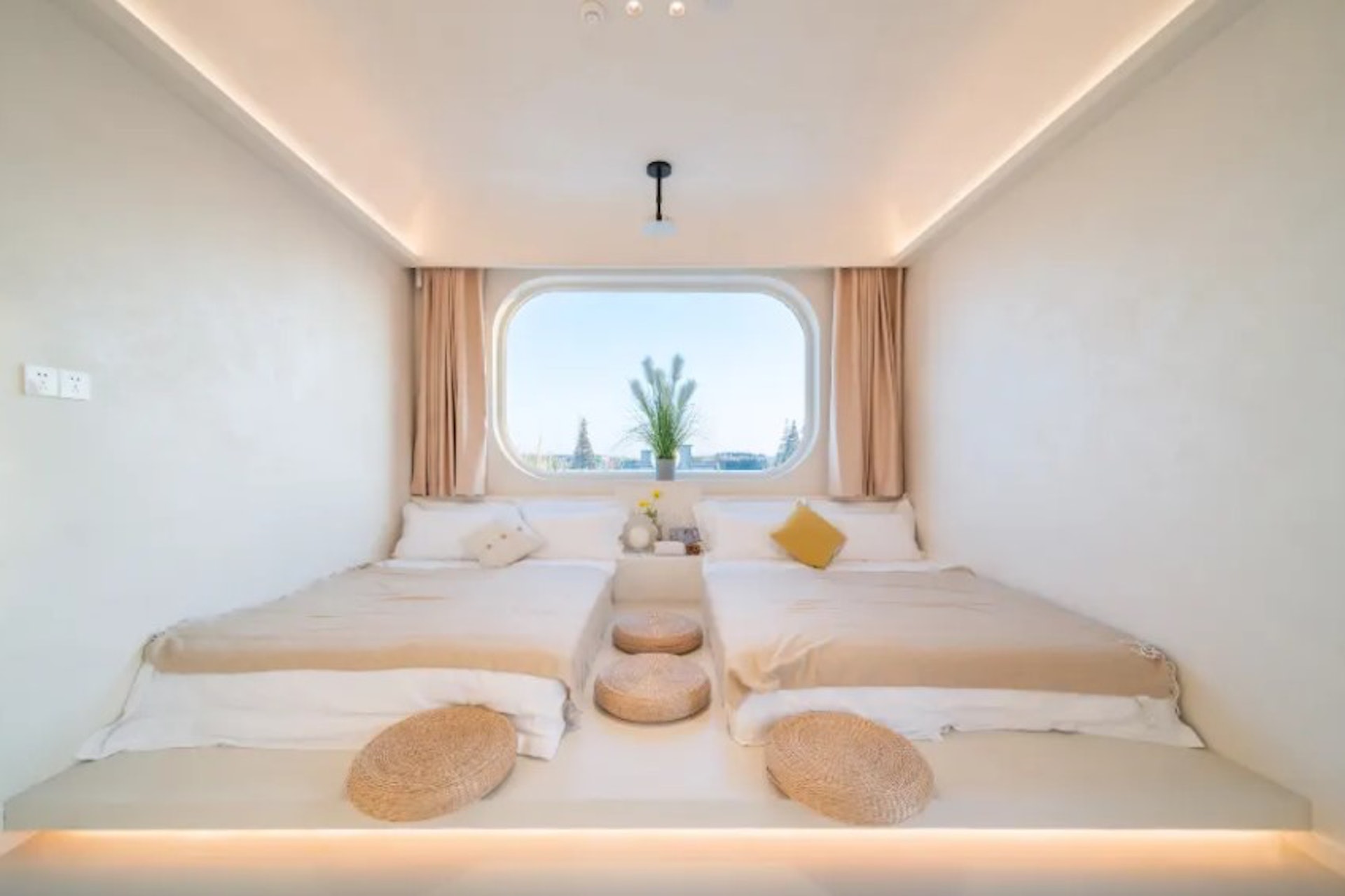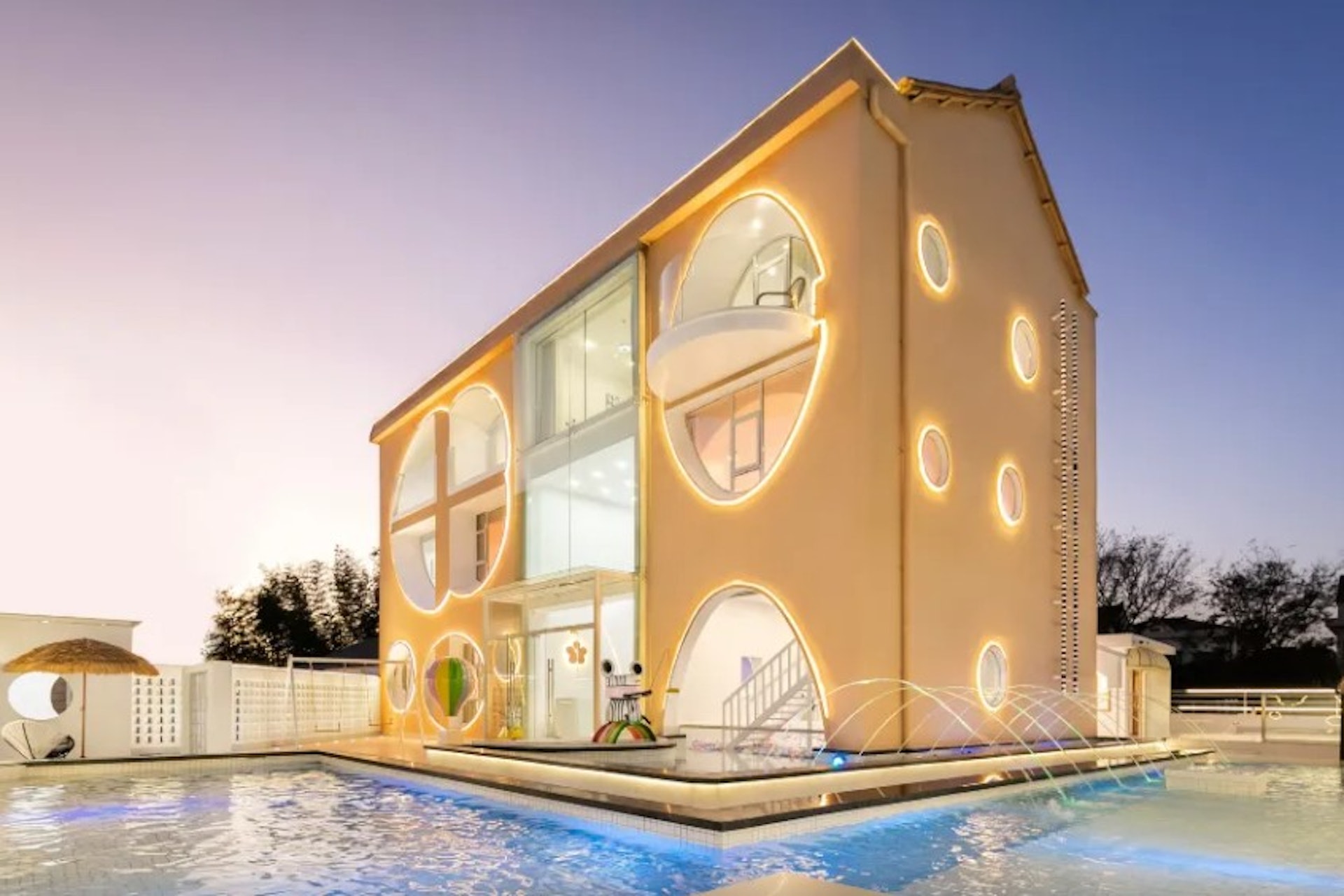 有訪客曾分享這個鄰近上海迪士尼的民宿,只要開車十分多鐘就到!早上有免費早餐和接送,服務態度貼心。房間以洞穴風設計,奶油般的配色也相當舒服,周圍不規則的小窗很可愛,設計感十足的建築風格,怎麼拍照都好看!不過,此飯店目前暫不接受預訂。