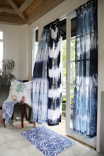 以生活工場為例,每年夏季都以「海洋」為設計發想,今年生活工場主題是「深海探險」。深藍色的海水有美麗的光影色澤,陽光折射到水面有多面的水系色彩,珊瑚礁、魚群、貝類也讓人有著優游在海底的輕鬆自在感。雖然地毯常被人忽略,但若將秋冬適用的長毛地毯,換成藤、竹、亞麻或棉等材質的地毯,且顏色選擇天空藍或米白色,視覺上會更加清爽。生活工場藍染海光地墊、星空點點地墊、層次織紋床前墊…等,都是以100%純棉做為材質選用,觸感軟,且棉屬於短纖維可吸水,清洗也最方便,顏色選擇上可搭配室內其他家具,如果客廳本身元素已經很複雜的話,建議搭配素色地毯。