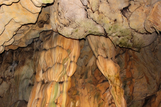 在龍河洞內,可以看到許多特殊奇形怪狀的鐘乳石,像是猶如歌劇院舞台布幕的大片石柱,或是宛如瀑布造型一般的鐘乳石。