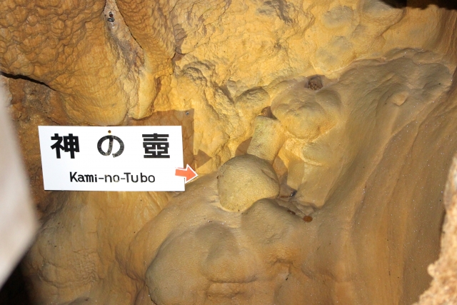 更特別的是,在洞內居然還有遠達2000年前彌生時代的生物居住痕跡。像是彌生土器、木炭、獸骨等等,相當罕見,而其中有一個稱為「神之壺」的景點,就是彌生時代的土器,積年累月被鐘乳石包覆,所形成的遺跡,這樣的案例在世界上相當稀有,也是龍河洞內相當具有代表性的景點。