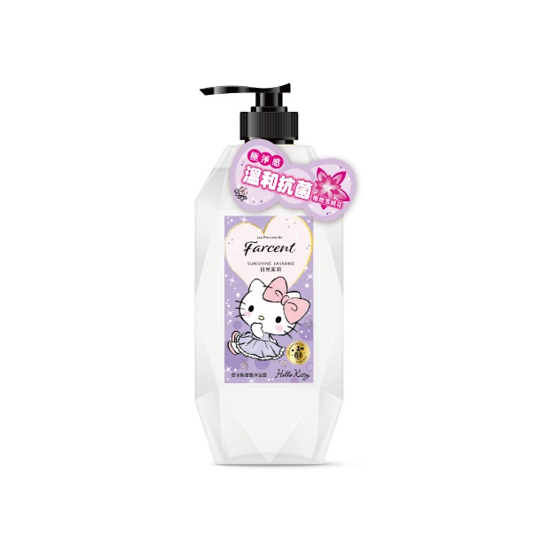 嚴選國際精品香水調,搭配超Q萌的Hello Kitty,Farcent香水胺基酸沐浴露此次推出的「日光茉莉」沐浴露是喜愛清新花果調的最佳選擇,以澄澈清爽的青蘋果與綠葉,揉合茉莉與雞蛋花香,交錯出溫柔沉穩的雪松,宛如置身清新果園;而「漫舞麝香」沐浴露則是以清新的鈴蘭點綴優雅別緻的玫瑰,酌以醇厚的琥珀與麝香溫暖烘托著,優雅浪漫,擁有令人為之傾倒的愉悅香氣。