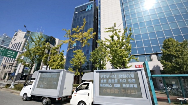 原以為子瑜會有更多個人活動的粉絲,卻發現今年度完全沒有嶄新的個人活動以及代言,讓大批粉絲質疑女神遭冷凍,集資出動2台卡車殺到公司,同時用韓文LED字幕表達訴求,雖然公司尚未回應,但事件持續延燒到各國粉絲圈,掀起廣大的聲討聲浪。