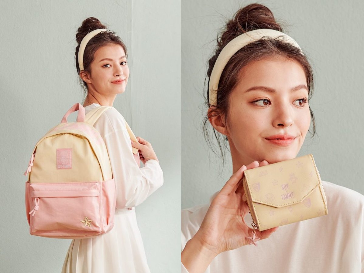 首先是以「安妮亞」為主題設計的包款,包含可放A4文件、13吋筆電的「多功能後背包」,兩側口袋可放水壺、折疊傘等,背面貼心防盜口袋設計,可套行李箱拉桿,另外還有同樣是粉嫩色系的「側背包」、「零錢包」與「三折中夾」搭配在一起輕鬆出遊去~