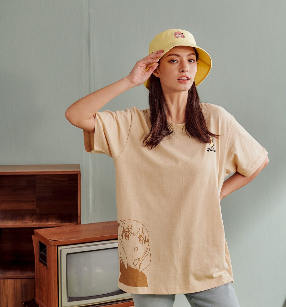除了許多不同的包款以外,這次更推出了限量「T恤」,上頭印著可愛的安妮亞仰望的圖案,胸口還有他最愛吃的花生呢~粉絲們還能搭配嫩黃色的「漁夫帽」一起出門,絕對能成為路上最吸睛的存在!