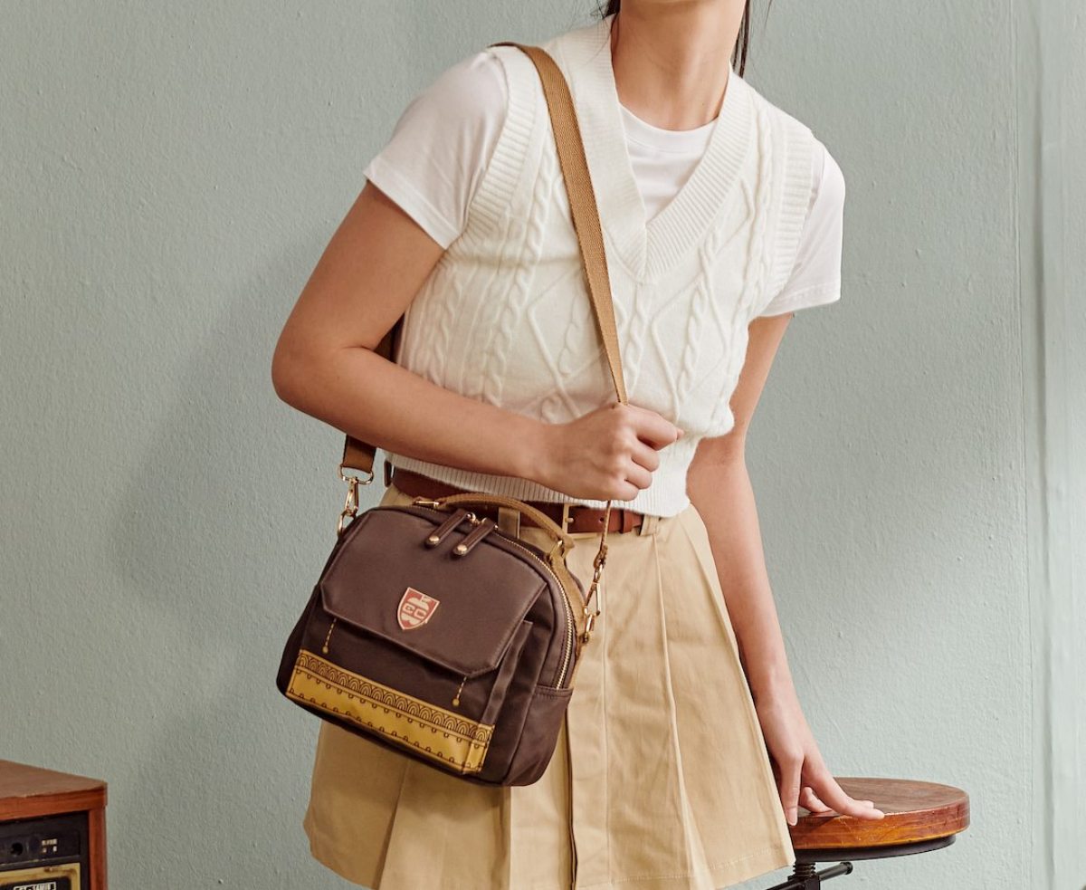 另外還有以伊甸學園校徽LOGO為設計的系列包款,同樣有大容量的「多功能後背包」、「零錢包」與「三折中夾」,而伊甸學園校徽款的「側背包」前方收納口袋,可以當手提包也能當側背包使用。