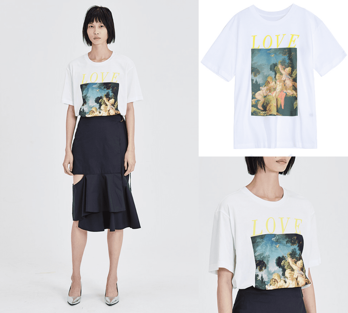雖然是以優雅的文藝復興做為視覺主題,但是帶有神秘的油畫圖案,以及飽和色彩,讓整體風格更加有個性。下身適合搭配色彩強烈的單品,讓穿搭更加新鮮有趣!
