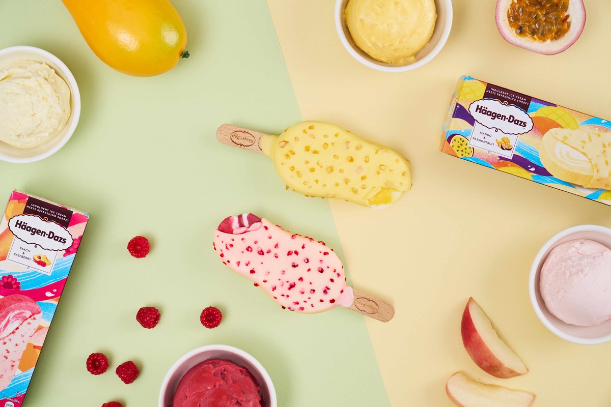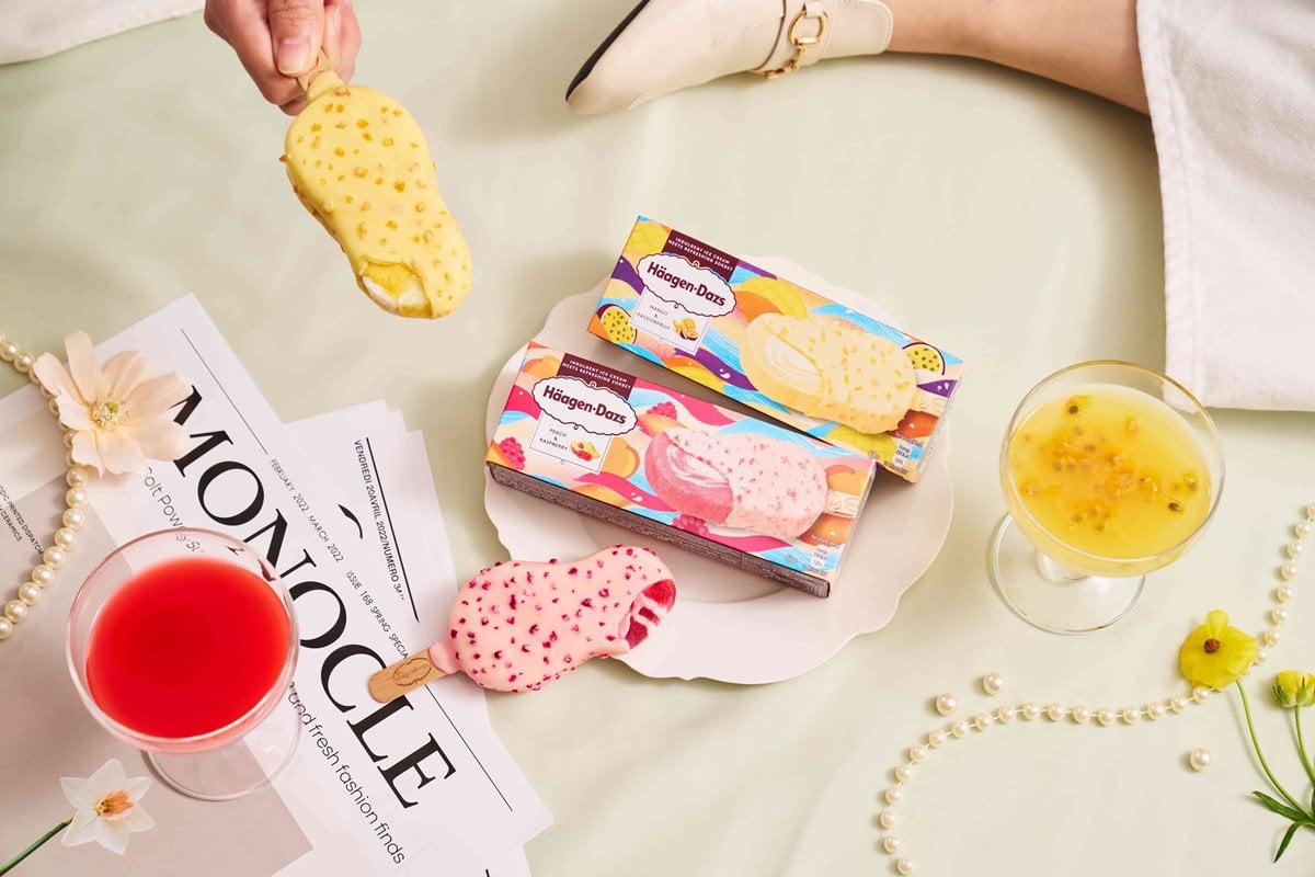 Häagen-Dazs「蜜桃覆盆子脆皮雪糕」酸甜怡人,入口散發自然果香;「芒果百香果脆皮雪糕」富有熱帶酸甜氣息,加入真實芒果果粒_,酸甜平衡