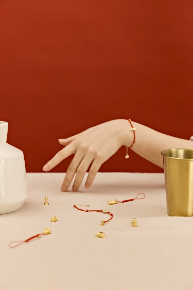 老虎變成胖胖萌虎子、豬懶洋洋躺地升格當幸福豬、老鼠加持可愛名字鼠勾一,而且每一隻精緻造型墜飾都緊緊抱著「大顆金元寶」,聯名祈願紅線手鍊、吊飾注入台灣人秒懂的趣味寓意,同時選用鍍14K金色,喜氣、財運通包,當然也有25 純銀低敏金屬材質可以選擇,不吸水,不易形成異味,不易退色,碰水洗澡也沒問題喔~