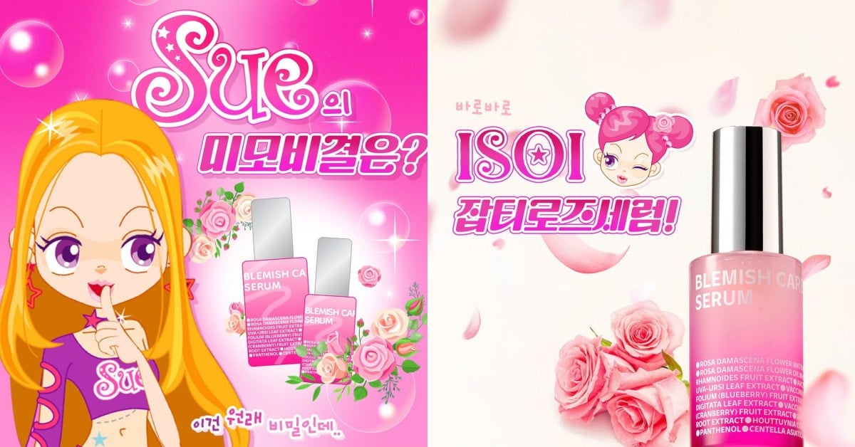 由於阿Sue的角色設定為「人氣虛擬偶像」,這次特別攜手韓國知名美妝產品ISOI合作,除了主打品牌的人氣商品「護理精華液」之外,還使用有如「李孝利造型」版本的阿Sue來擔任代言人(笑),帶領大家一起探索大明星「阿Sue的美貌秘訣」,讓原先就很有話題度的玫瑰精華液再添熱度!