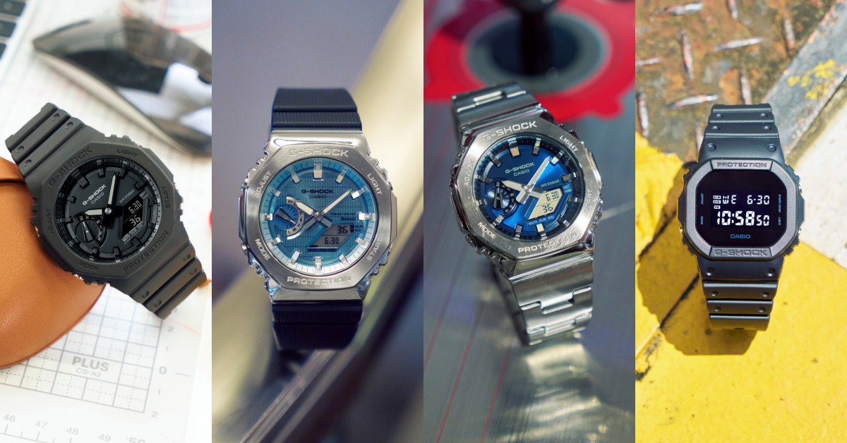 左至右 GA-2100-1A1/NT$3,600;GBM-2100A-1A2/NT$8,000;GM-2110D-2B/NT$10,000;DW-5600UBB-1/NT$3,200