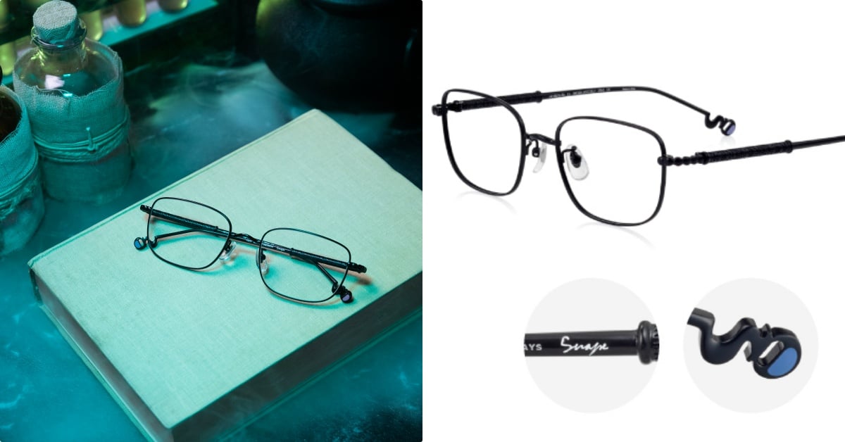 大家追憶的「魔藥學教授」賽佛勒斯·石內卜,也有專屬設計眼鏡!乍看極簡的「霧面黑配色」的聯名眼鏡,其實滿滿細節,鏡腳上不僅雕刻著教授的名字,更加入了魔杖的造型,鏡腳尾端以大鍋的輪廓和七寶工藝裝飾,完美展現課堂上使用的大鍋與藥水色調,只有在官網上才買得到。