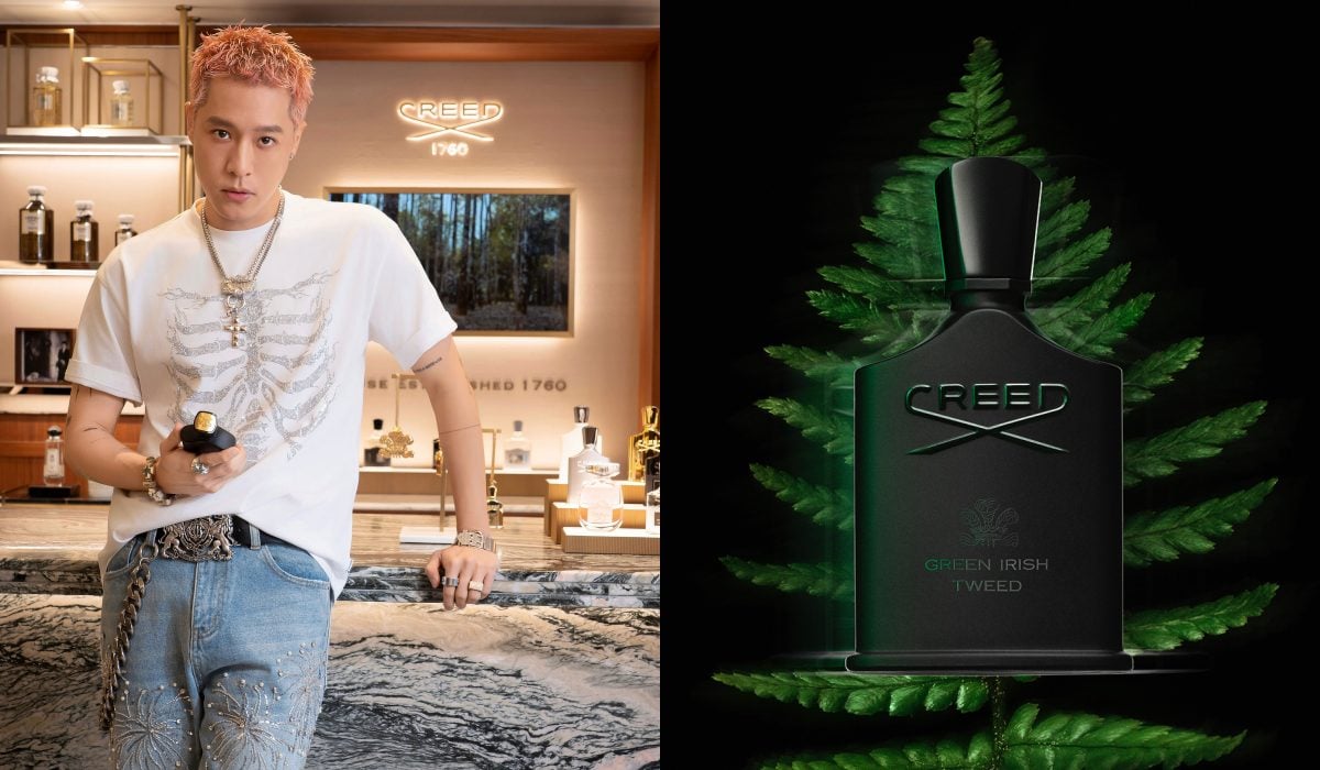 私下是香氛收藏家的周湯豪,這次以品牌之友身份出席開幕活動,他分享人生第一瓶入手收藏的香水,就是CREED「愛爾蘭之心」,以英國傳統織物「粗花呢」為靈感,致敬家族中曾為歐洲王室打造高級時裝的工藝傳統,前調是薄荷與馬鞭草帶來清新醒神,中調則以紫羅蘭與薰衣草展開,如陽光灑落在青草之上,後調則由印度檀香、雪松、橡木苔與龍涎香交織出深沉溫潤的質地,是一款滿皇室貴族氣度的男香。