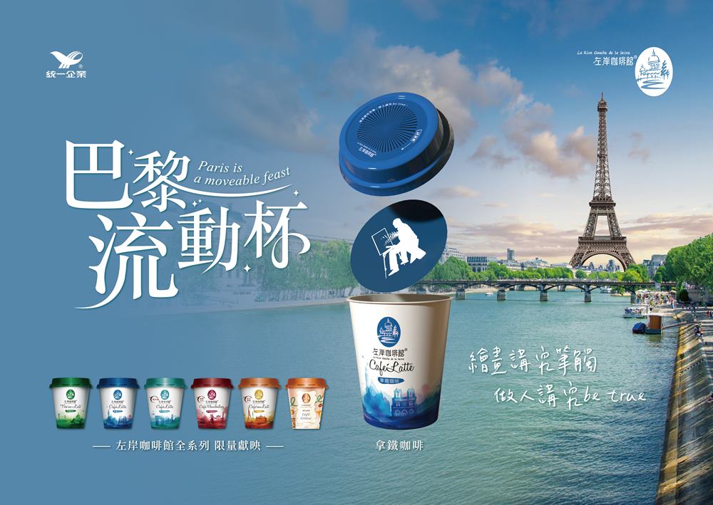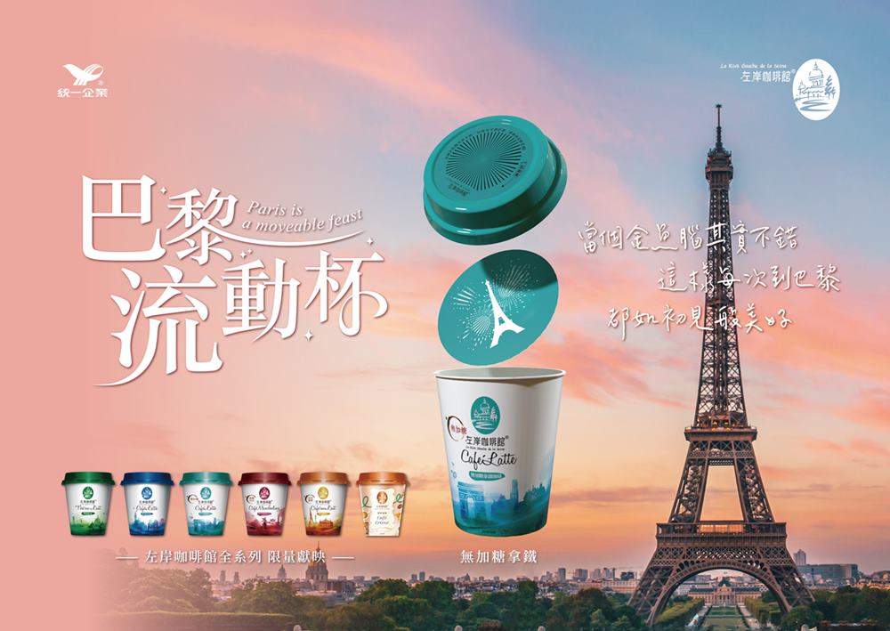 提到巴黎,你腦海中浮現的是什麼景象呢?是坐落在古典街道上的優雅建築?還是戀人牽著手,漫步走向遠方雄偉的凱旋門?巴黎的美不只是靜態的建築,連走動的人群、演奏樂器的小提琴手等都成就了這份美麗,交織出世人對巴黎的浪漫想像,正如作家海明威所說:「巴黎是一席流動的饗宴」,巴黎的美從來都不是停格的畫面,而是不斷變化的藝術展演,左岸咖啡館以此為靈感,推出期間限定包裝「巴黎流動杯」,將最經典的巴黎印象都收進每一杯咖啡裡,透過視覺暫留的設計理念,輕輕轉動杯蓋,靜止的影像就會「流動」起來,讓巴黎彷彿躍然指間,帶你一秒穿越到浪漫街頭!