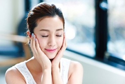 最後,以雙手掌心輕輕按壓雙頰與額頭,幫助CC霜中的保養成分滲透,並提高整體妝容的服貼度。