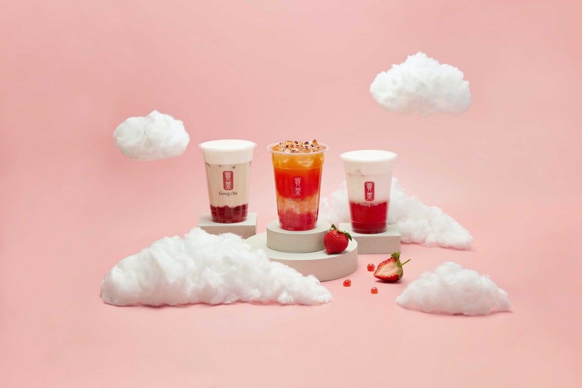 迷客夏以大湖香水草莓手作製成「草莓庫莉醬」,並用它當基底一口氣推出3款草莓飲品~首波主打「莓啵三重奏」,加入了娜杯紅茶與全新配料「脆啵啵球」,以及清爽的綠茶凍,打造多重口感;另外還有奶茶控必喝的「粉莓茉香奶綠」,與清爽草莓冰沙「KUMO粉莓」,鹹甜奶香KUMO奶霜升級整體滋味,妞妞們快一起喝起來。