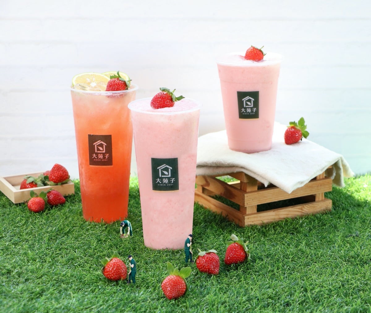 要說到水果飲品的專家,當然不能少了大苑子呀!草莓控最愛的「莓好時光」強勢回歸,新鮮草莓加上濃郁鮮奶,香濃滑順還能吸得到新鮮的果肉,讓人喝一杯就愛不釋手~另外還有爽系飲品「莓好花漾」,新鮮草莓加上香醇清爽的青茶,還可以吃到QQ愛玉和一整顆的草莓,口感豐富順口呢。