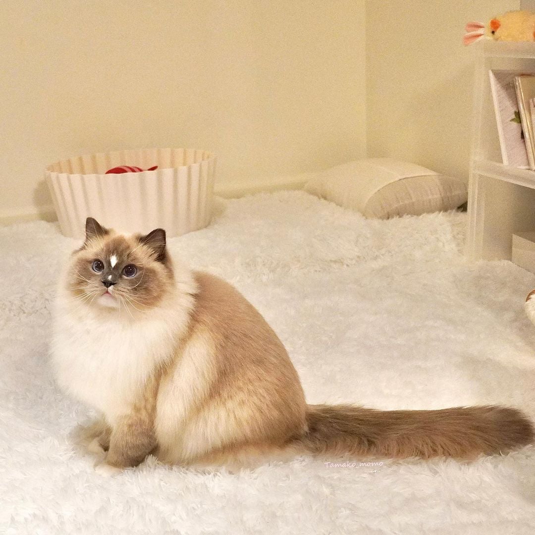 布偶貓的體型也比一般貓貓大了點(阿嬤養的除外XD),未結紮的公貓平均有7~8公斤,母貓大約是4~5公斤,結紮後會再多個1~3公斤。而大家最關心的「毛量」當然是需要花最多時間照顧的地方,如果沒有每天梳毛可能就會有打結、掉毛的情形發生!(原本體型已經偏大,加上毛蓬就更大隻了!)