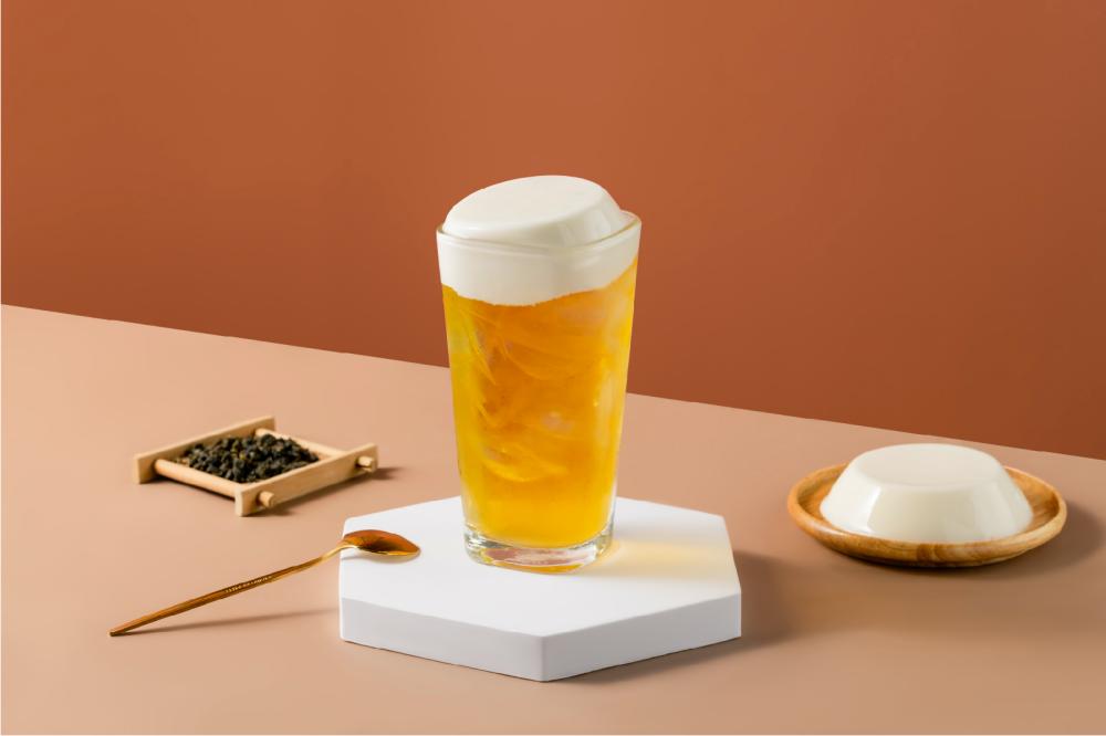 鬍子茶這次推出「特濃奶凍」與「澎湃飽足系」2款飲品,「奶凍紅茶拿提」以台灣雲林小農「崙背鮮乳」與紅茶調和,再加上帶著濃郁乳香的奶凍,滋味豐富多層次,奶茶控必喝;「奶凍雪芽青」則是使用南投四季春茶為底,清爽茶韻搭上滑嫩奶凍,讓人忍不住一口接著一口。