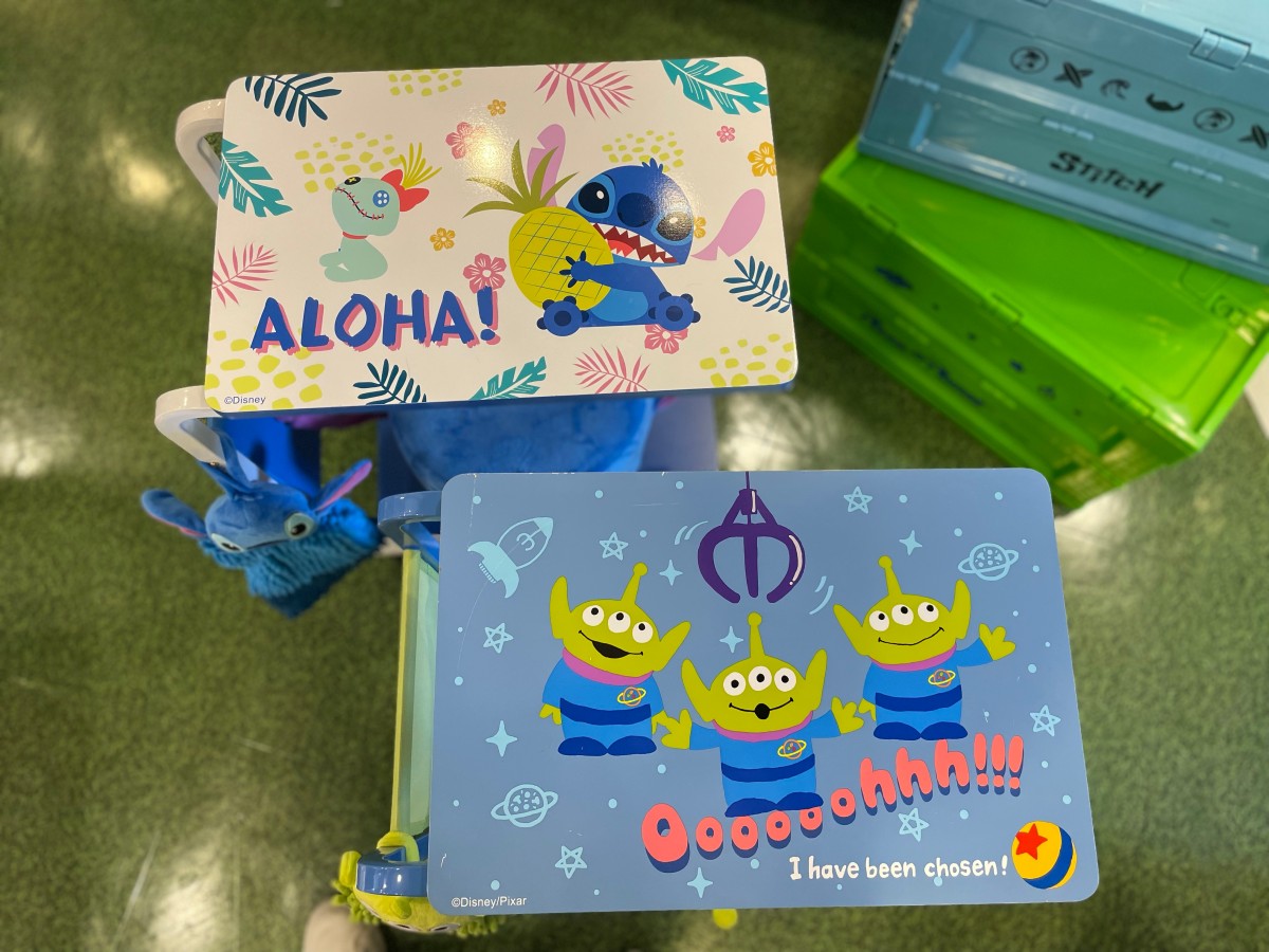 第二波週邊主要是居家用品,以「萌友限定太空體驗營」為主題。小圓椅與多功能邊桌共有史迪奇、三眼怪為主角,造型融入宇宙萌主的代表元素,其中「多功能邊桌」加入滑輪設計,移動方便,側邊還有袋子能收納物品,可愛又實用。