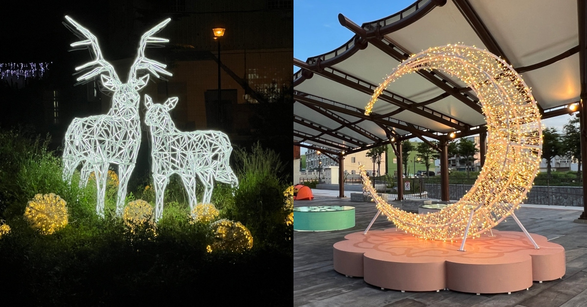有代表「飲水思源」、「魚躍龍門」的噴泉主題燈光,與環境充分融合佈有「星光點點」,極度浪漫;以代表鹿港的梅花鹿光影藝術「蓬萊仙鹿」及「鹿奔原野」,呈現早年梅花鹿奔馳原野的想像,並表達鹿仔港名稱的由來。還有「螢光點點」、「炫彩大道」、「餅香四溢」等,沿著河畔走便能欣賞不同展品。近期要到彰化鹿港玩的妞妞們,別忘了把光影藝術節排進行程裡啊~除了白天感受小鎮的文化風情外,夜晚欣賞期間限定的藝術作品,來留下不同的回憶吧!