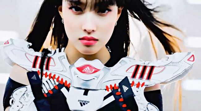 在意外掀起的球鞋改造風潮之中,人氣女團STAYC的成員YOON算韓國歌謠界「首先穿上球鞋的始祖」(笑),早在今年2月帶著主打歌〈RUN2U〉回歸時,YOON的打歌服就是用紅、白配色的adidas「復古跑鞋Response CL」改造再製而成,飛揚的墊肩有+變形金剛一般的「戰甲」,彷彿架著2雙球鞋的破格上衣,立刻引起熱烈討論。