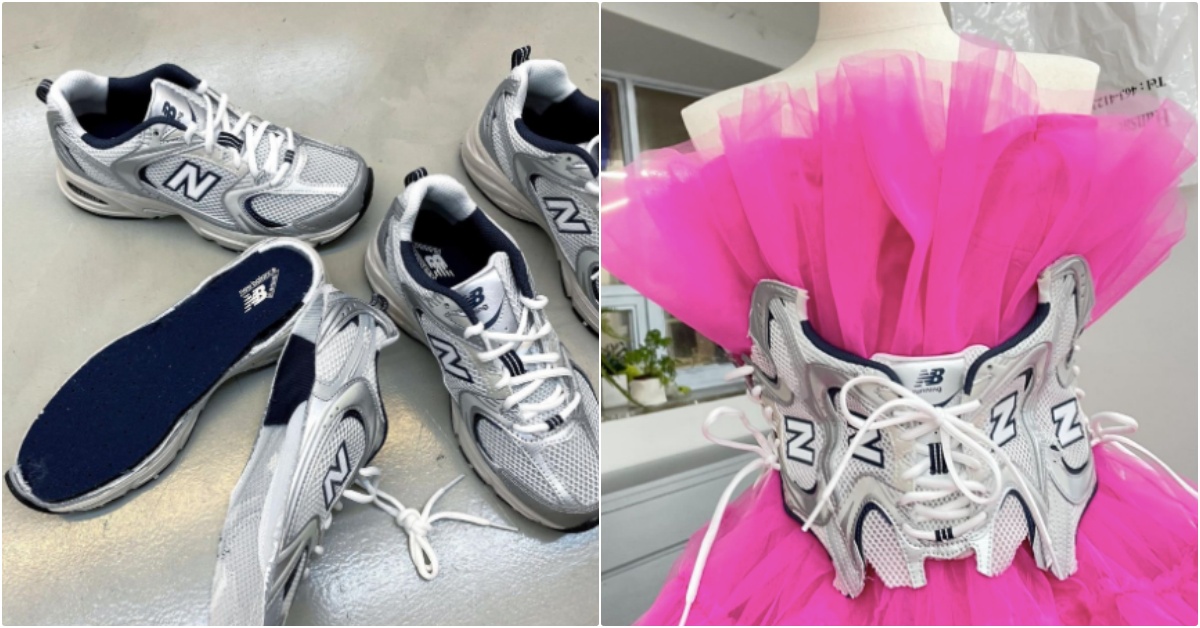 不只能當上衣,還能變身最吸睛的配件,JYP新人女團「NMIXX」在2月底的出道曲〈O.O〉MV裡,受封新一代神顏有力候補的成員Sullyoon(允雅),穿著一席甜美的粉色澎裙洋裝登場,手臂處居然混搭了一組球鞋手套,仔細看可以發現也是用New Balance球鞋肢解改造的,意外地很呼應胸口處的綁帶馬甲。