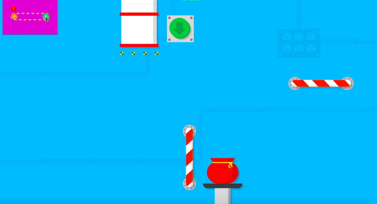 造好道路之後,按下綠色的按鈕便能讓禮物從煙囪掉下來。如果順利掉進禮物袋就算過關啦!遊戲共計十關,如果禮物沒有掉進袋子,並不會導致遊戲出局,可以再次嘗試,直到破關為止。