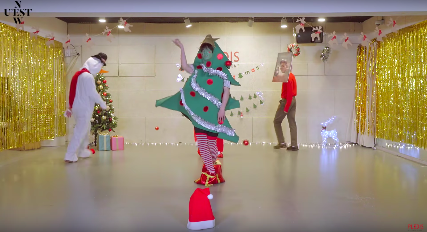 NU’EST W為了謹守一位公約,這次又祭出誠意滿滿的影片啦!Aron扮成電影裡的經典鬼靈精、Ren以電影《小鬼當家》的主角小孩LOOK登場,而另外兩個看不太到臉的…「白虎」COS成雪人,而背景裡那棵本來以為不會動的聖誕樹就是「JR」變身的!沒錯,就是跟昌燮同一套SET(笑)!四人開始努力的呈現〈Help me〉編舞的「聖誕限定版」…(邊跳邊噴雪XD)