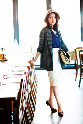 日雜愛用條紋針織披肩讓層次豐富。