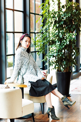 鬆軟高領韻味慵懶,戴髮帶露額更有朝氣。