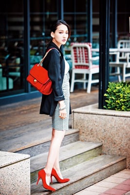 紅色配件為簡約穿搭中添加辛辣感。