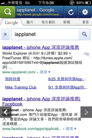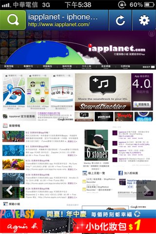 在這裡看到的畫面其實跟從瀏覽器中看到的畫面差不多,上下滑動畫面,點選連結就可以進入網頁。