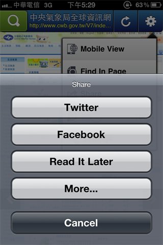 你可以將正在看的網頁分享在自己的社群網頁中,「Read it later」則是要申請帳號,將內容記錄在自己的帳號中。