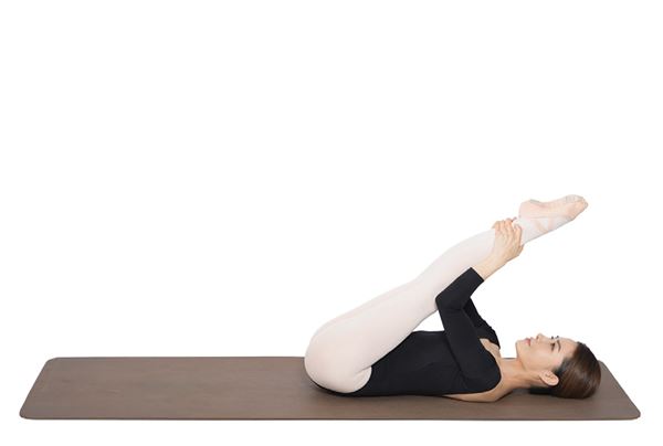 動作4:將兩腿向上伸直,腳尖呈立足尖動作。
