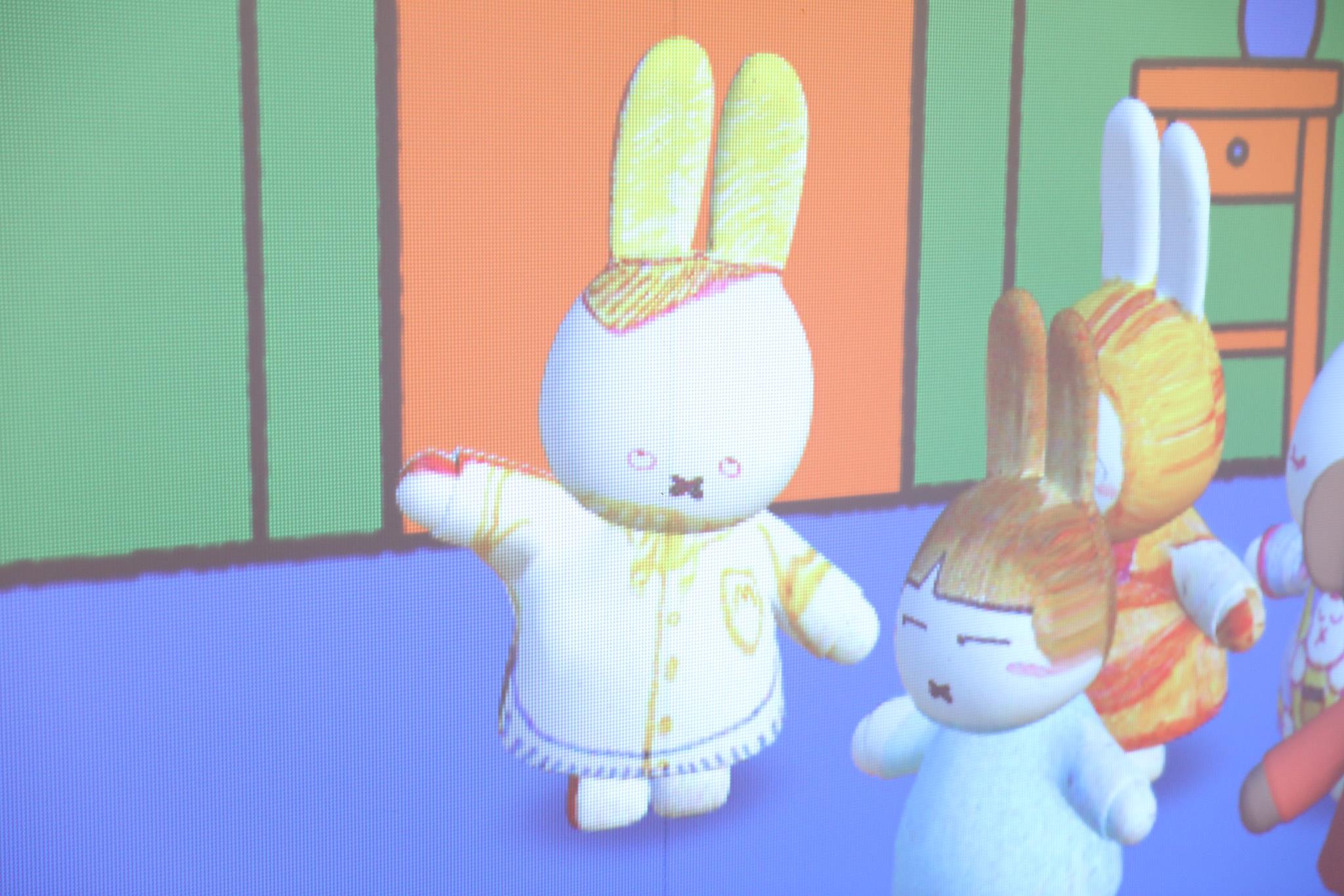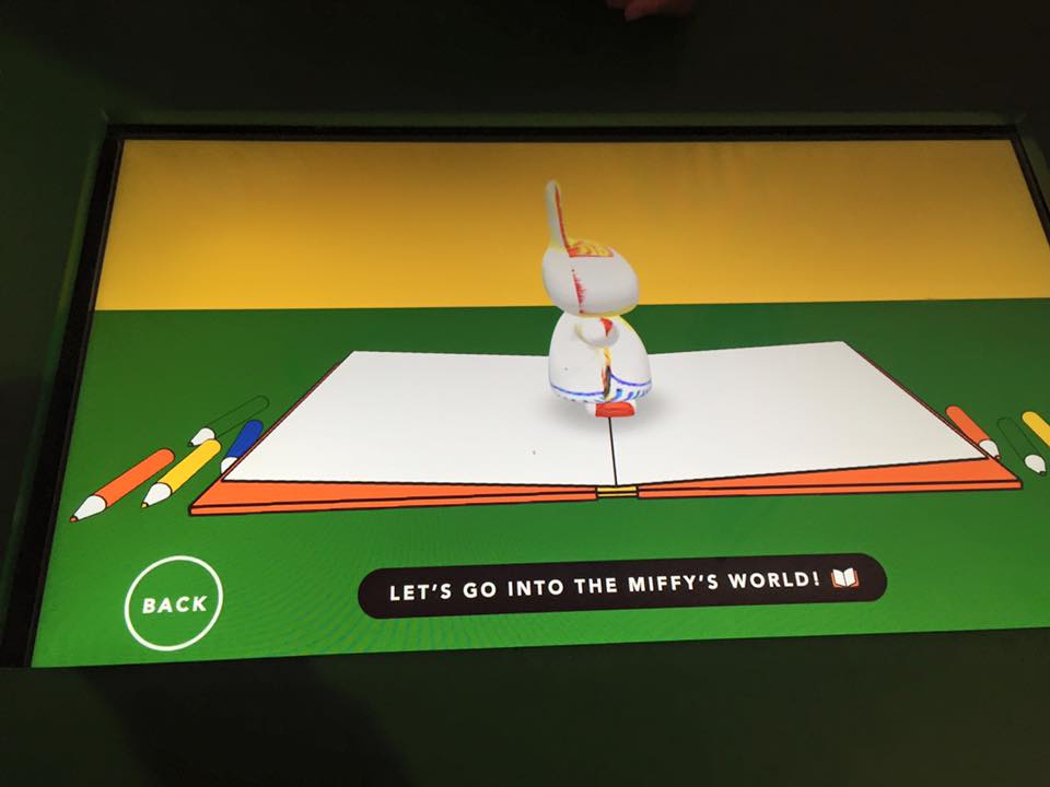 親自看見自己畫的平面插畫變立體實在太神奇啦!空間內的米飛兔會隨意走動和做一些揮手等簡單動作,彷彿真的進入米飛兔的立體繪本世界呢!