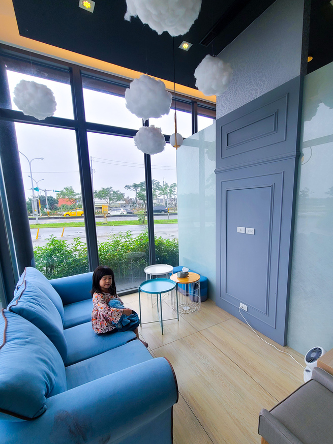 家具顏色都很溫柔,天空還掛著白雲