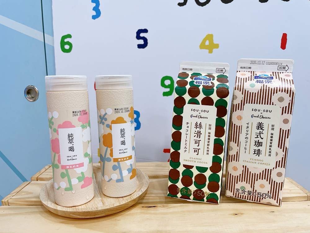 冬季聯名首波推出3款醇乳奶茶、鮮攪絲滑可可與義式咖啡3樣濃厚系飲品,包裝換上SOU・SOU新花色,享用之前別忘了先拍幾張打卡照。(花朵圖案超可愛,喝完飲料後瓶子可以留念)