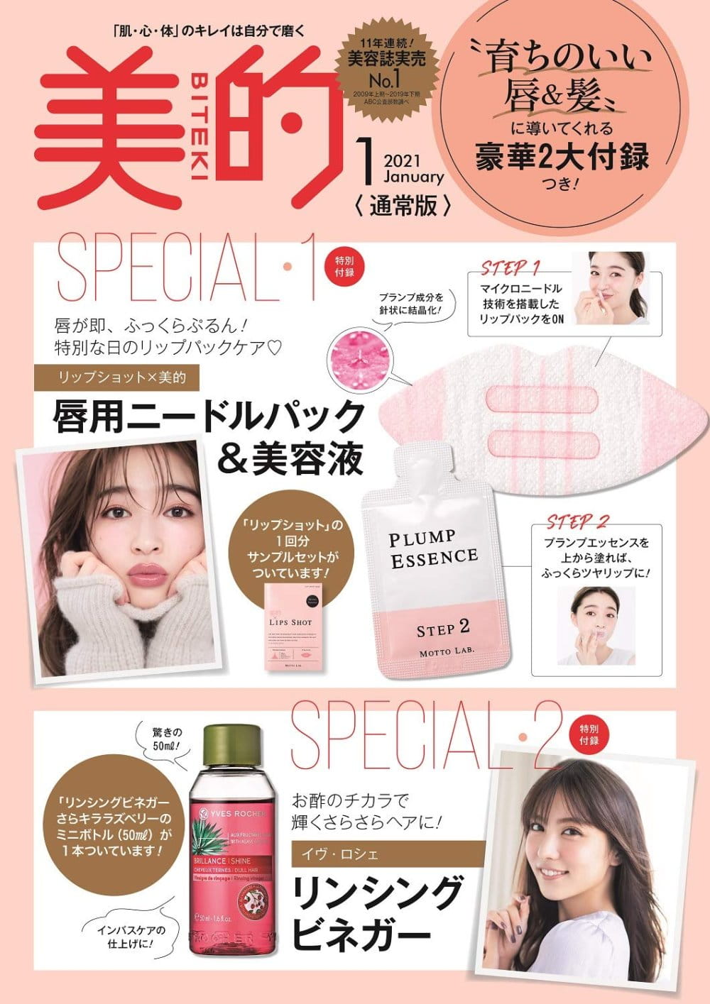 冬天空氣乾燥,加上疫情關係需長時間戴著口罩,這情況讓你的肌膚越來越差嗎?《美的BITEKI》主題為培養美肌的日常步驟,如何養出不暗沉的水潤透明肌都收錄在這。附錄則是送出「特製唇用面膜」&「YVES ROCHER葉露芝光彩淨化髮醋」,這個冬天一起來變美吧!