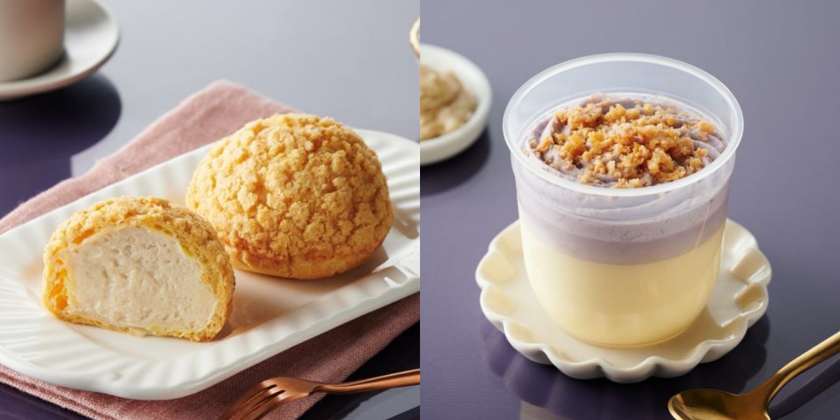 另外還有3種小食,很適合在下午茶的時候拿出來吃!首先是「芋泥大福」,利用檳榔心芋製成的芋泥慕斯搭配香甜蜜芋頭,外皮軟Q、甜而不膩,奶香芋香交織在一起,冰過之後更加美味喔。另外經典的「芋泥菠蘿泡芙」、「芋泥雙層布丁」也重新回歸,芋頭控千萬別錯過。