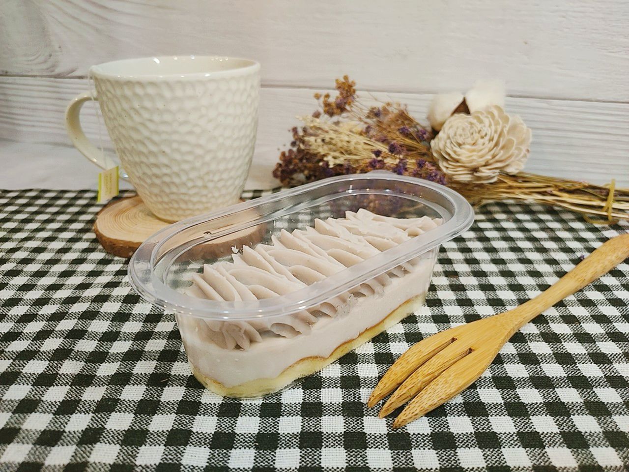 首次亮相的還有「芋泥千層捲」,將千層餅皮包裹芋泥餡料,捲成猶如毛巾般的蛋糕捲,每一口都還吃得到芋頭顆粒,相較前面兩款,千層捲的芋頭味比較沒那麼重,不喜歡吃太甜的妞妞可以選這個。