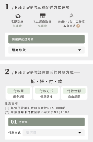 Step3. 最後選擇運送方式,有7-11超取或是宅配到府兩種選項,付款方式可以選轉帳或是信用卡,而且最高可以分成24期付款,讓你每月無痛還!選好之後就可以直接結帳,快樂等收包啦~