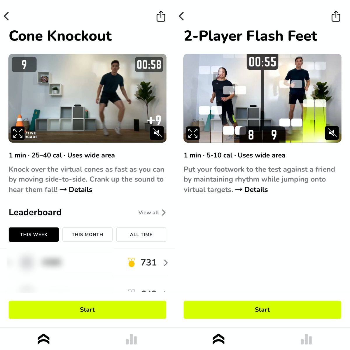 目前有訓練反應力、移(踢)開角錐等18種遊戲,如果妞妞們家裡有籃球或足球,還可以搭配使用,另外還有雙人比賽模式,讓你跟同住的家人朋友PK!且每週還會推出1款新的運動,不需擔心很快就覺得膩。每款運動時間為30秒至1分鐘,App會告訴你這60秒約可消耗多少卡路里。