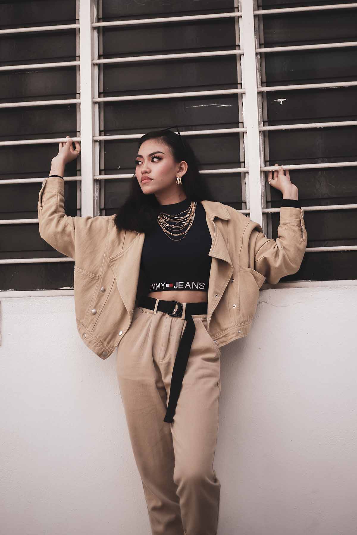 不用多說,無論是那件丹寧外套或是直筒丹寧褲,都是經典中的中性單品,搭配上西裝外套產生混搭的風格,再踩上白鞋簡直就是男友LOOK。