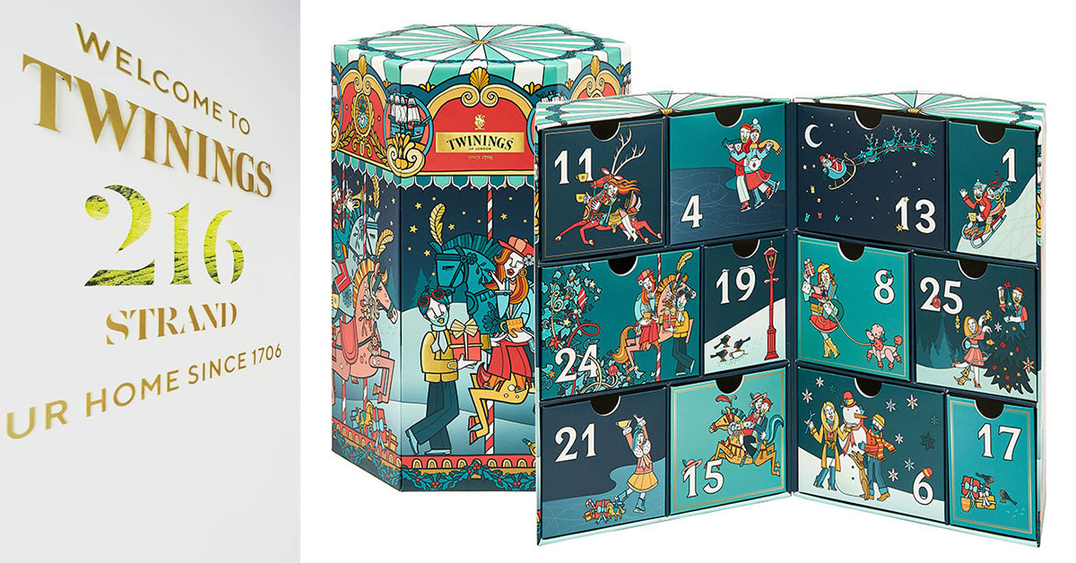 「絢麗冬遊聖誕倒數禮盒」滿載著12款TWININGS 精心打造的聖誕驚喜,除了頂級鉑金系列茶款,承載著調茶大師從世界各地汲取的豐沛靈感與創意,甘美的茶韻與馨香為冬季增添暖意與優雅品味。更以英式午茶概念,與知名的歐式甜點店 Miss V Bakery 合作,以意想不到的tea infused 手法,獨家客製出充滿茶香與蜜意的薑芒綠茶狂想曲硬糖、香醇伯爵茶牛奶糖,以及異國香蘋果醬,帶給消費者嶄新的味蕾享受。此次也推出獨特時尚質感小物,點綴生活精緻品味,皇家伯爵茶氛精油擴香組以及薑芒綠茶狂想曲香氛蠟燭,讓宜人的香氣瀰漫在空中,打造療癒紓壓的暖意與浪漫。時尚藝術絲巾、唐寧鉑金藝術杯墊以藝術家 Allan Deas的獨家設計展現出藝術即生活的英倫風尚。