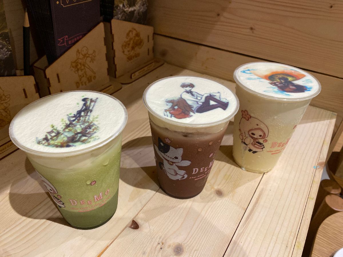 此次還推出了主題餐廳與週邊商品,像是DEEMO造型黑巧克力鬆餅、四款DEEMO特調等餐點。其中特調飲品很特別的是,奶蓋上印有經典的插畫照片,像是女孩與哥哥一起看書、DEEMO的獨照等。DEEMO特展展期為11月1日舉辦至12月1日,粉絲們不要錯過囉!