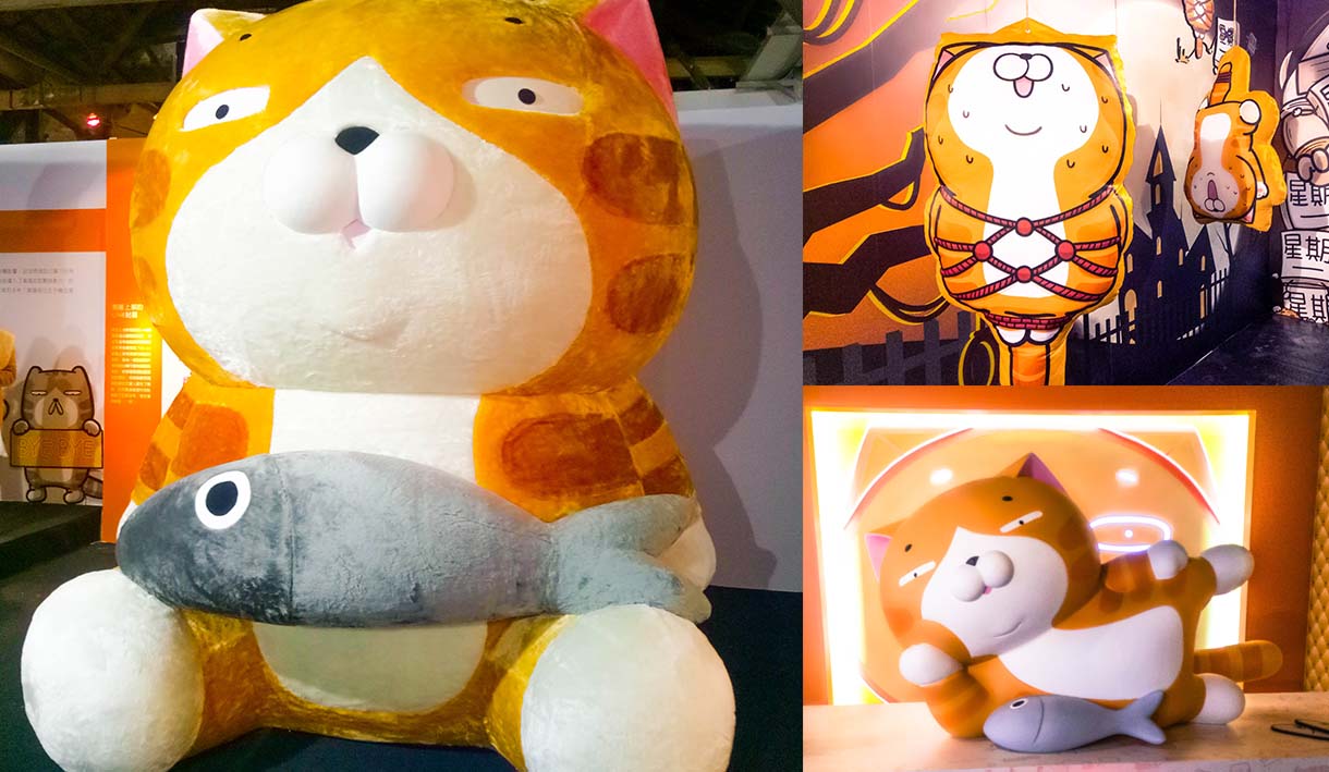 這次特展亮點就是場外有超巨大爛爛!場內也有一尊巨大爛爛呀~(而且還有毛,軟綿綿的就是超好摸!)這個拿著魚魚的巨大爛爛,粉絲們也可以坐在上面與他合照唷!在展覽最後,也可別忘記欣賞白爛貓家族們誕生的秘辛畫作!這些畫作都是麻糬爸創作的心血呢!